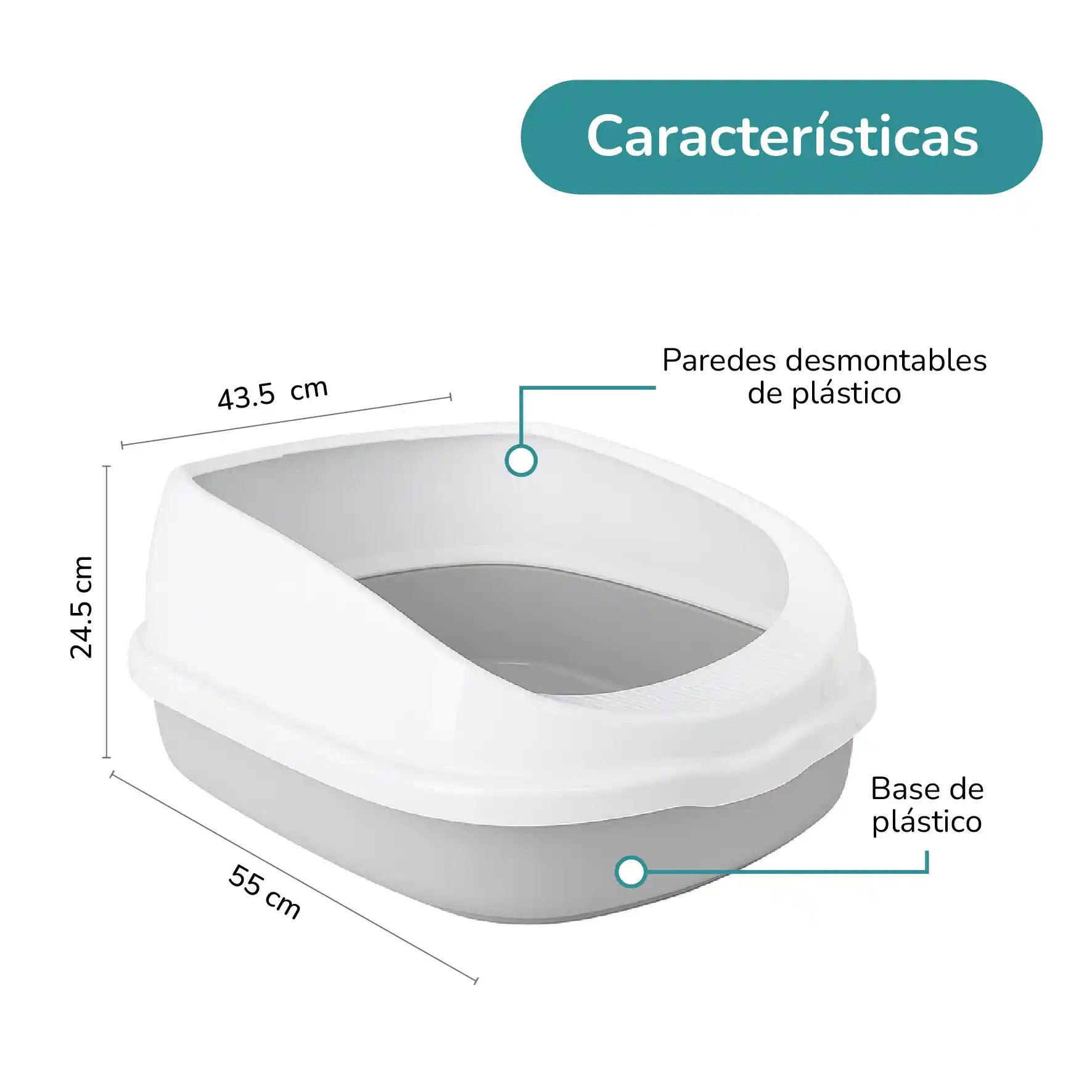 Mantén la higiene de tu gato bajo control con este arenero gris desmontable de 55 cm. Diseñado para combinar comodidad, practicidad y limpieza, su borde superior removible evita derrames de arena y su diseño abierto facilita el acceso de tu mascota.